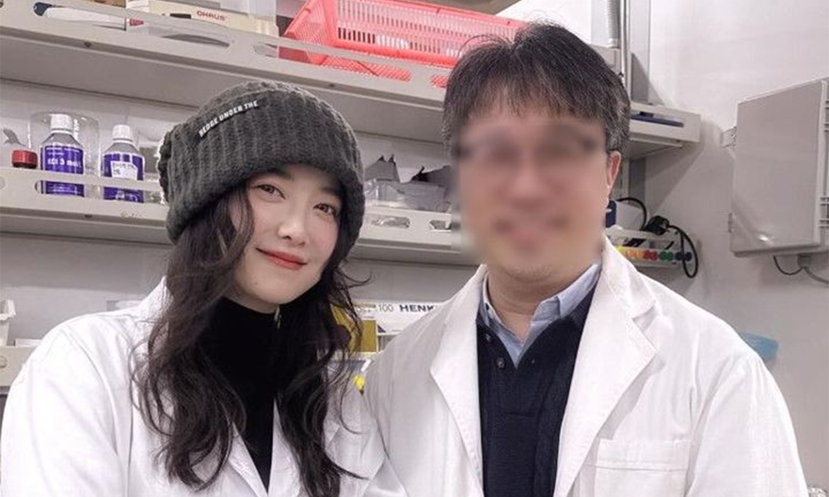 사진 속 구혜선은 흰 가운을 입고 카이스트 화학과 이해신 석좌교수와 나란히 서 있다. 편안한 미소와 함께 연구원 같은 차림이 눈길을 끈다.