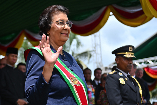 수리남 첫 여성 대통령 취임 입력 : 2025-07-17 18:53:26 수정 : 2025-07-17 18:53:25 구글 네이버 유튜브 수리남의 최초 여성대통령으로 취임한 예니퍼 헤이링스 시몬스 대통령이 16일(현지시간) 수도 파라마리보에서 열린 취임식에서 참석자들의 환호에 손을 들어 답하고 있다. 시몬스 대통령은 수리남이 본격적인 유전 개발을 앞두고 있는 것을 염두에 두고 “석유개발 이익을 전 국민과 나눌 것”이라고 밝혔다. <연합>연합> Copyright ⓒ 세계일보. 무단 전재 및 재배포 금지 연합