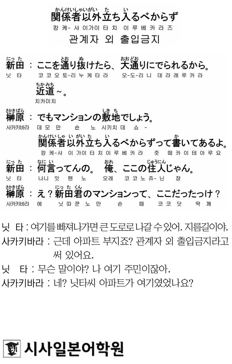 [시사일본어학원의 초단기 일본어 회화] 관계자 외 출입금지 입력 : 2025-07-17 18:29:57 수정 : 2025-07-17 18:29:56 구글 네이버 유튜브 Copyright ⓒ 세계일보. 무단 전재 및 재배포 금지 세계일보