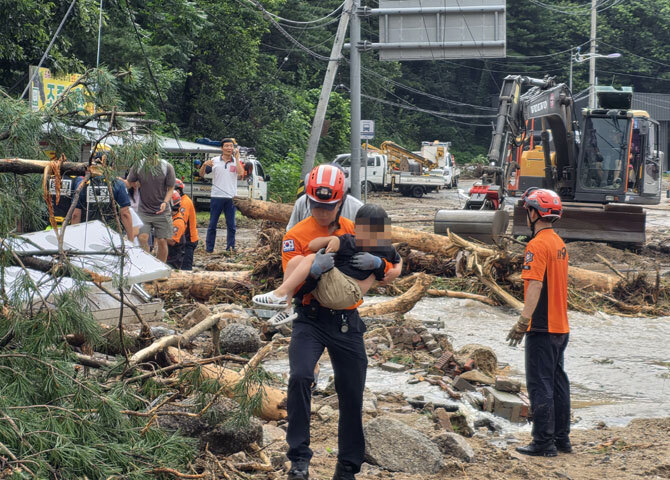 오전 6시14분에는 상면 항사리 대보교에서 급류에 휩쓸려 실종됐던 40대 남성 B씨가 숨진 채 발견되기도 했다.