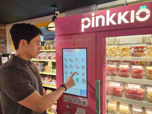 무인 과일 냉장고 ‘핑키오’는 세상에서 가장 작은 과일 편의점을 콘셉트로 만들어졌다. 제철에 맞는 소용량 과일을 핑크 색상 키오스크에서 제공한다.
