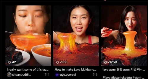 용암 먹방을 올린 또 다른 틱톡 이용자 'enf***'도 "뜨거운 용암을 먹는 것은 쉽지 않은 일"이라며 "AI 선배님들 너무 대단하셔"라고 남겼다. 이 영상도 약 80만회 조회수를 보였다.