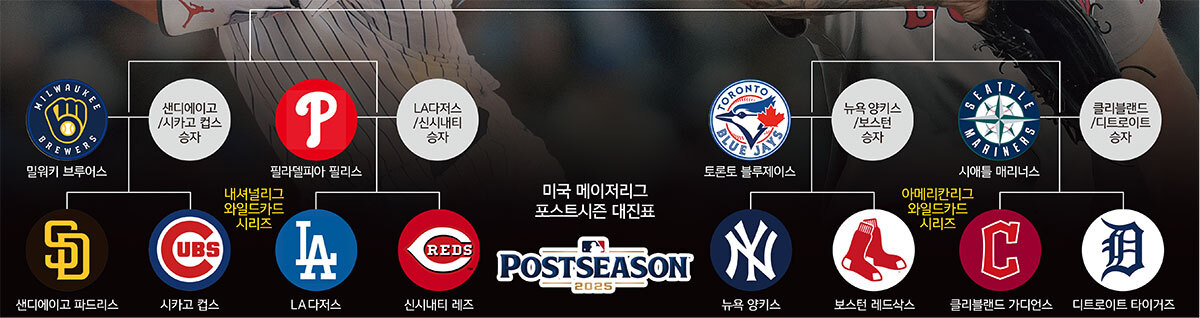 올해 ‘가을의 전설’을 써낼 팀은 어디일까. 팀당 162경기의 정규시즌 대장정을 마친 미국프로야구 메이저리그(MLB)가 가을을 맞아 이제 30개 팀 중 12개만 살아남았다. 올 시즌 최강팀을 가리는 2025 MLB 포스트시즌이 1일 와일드카드 시리즈를 시작으로 막을 올렸다.