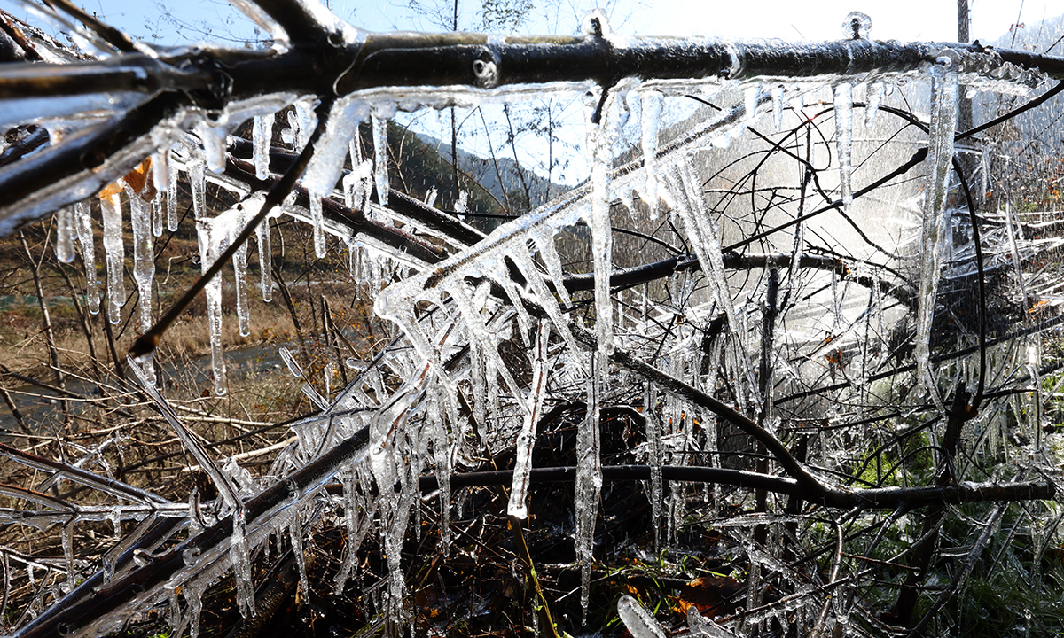 강원도엔 벌써 고드름 입력 : 2025-11-03 18:49:30 수정 : 2025-11-03 18:49:29 구글 네이버 유튜브 전국 곳곳이 초겨울 날씨를 보인 3일 강원 홍천군 내면 한 농가의 스프링클러에서 새어 나온 물이 인근 나뭇가지에 고드름처럼 얼어붙어 있다. <연합>연합> Copyright ⓒ 세계일보. 무단 전재 및 재배포 금지 연합
