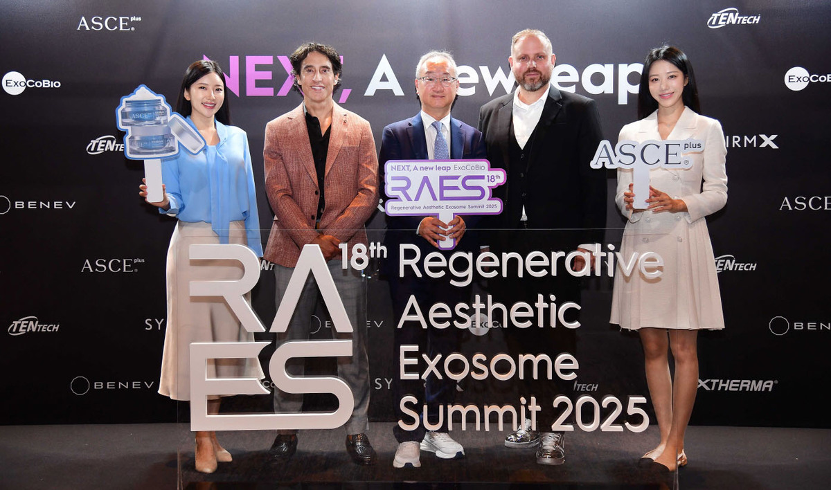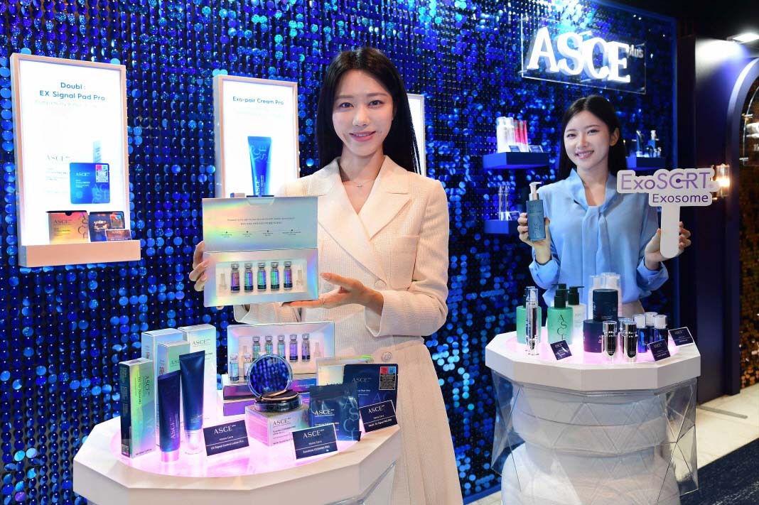 3일 서울 서초구 JW 메리어트 호텔에서 열린 '제4회 재생 에스테틱 엑소좀 서밋 2025'에서 모델들이 엑소코바이오의 스킨케어 브랜드인 'ASCE plus' 신제품을 선보이고 있다.