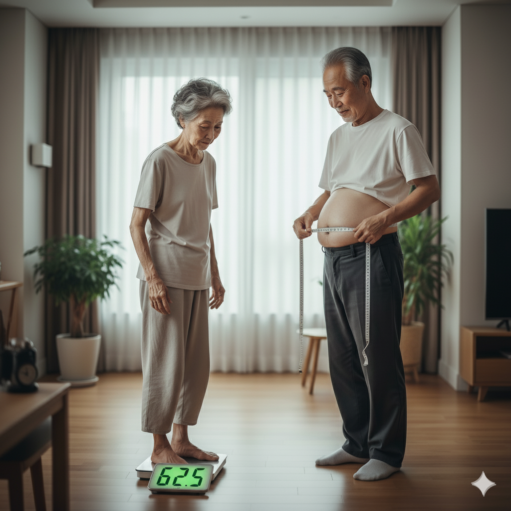 전문가들은 노년층의 경우 체중계의 숫자만 보고 건강 상태를 판단해서는 안 되며, 복부 비만 여부를 따로 확인해야 한다고 조언한다.