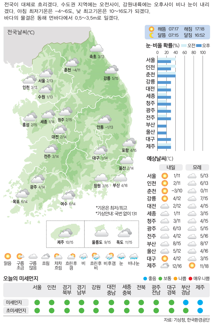 [20일의 날씨] 찌푸린 하늘 …중부지역 비나 눈 입력 : 2025-11-19 18:23:04 수정 : 2025-11-19 18:23:03 구글 네이버 유튜브 Copyright ⓒ 세계일보. 무단 전재 및 재배포 금지 세계일보