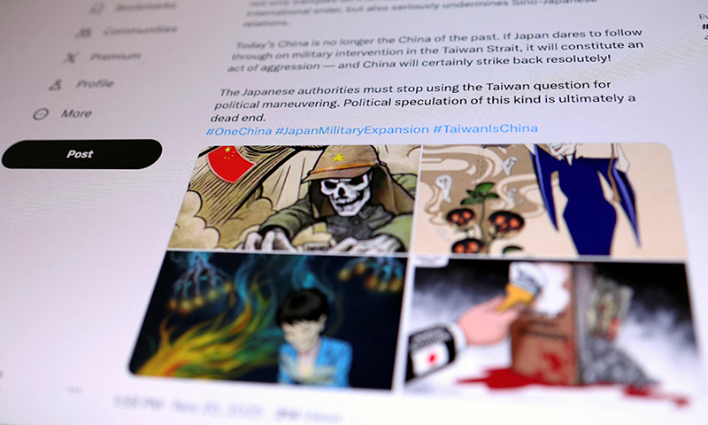 주필리핀 중국대사관은 엑스 계정에 다카이치 총리가 평화 헌법을 불태우고 군국주의를 부활시킨다는 내용의 만화를 게재했다.