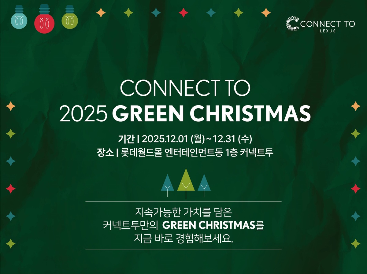 렉서스코리아는 연말 시즌을 맞아 12월 1일부터 12월 31일까지 복합문화공간 커넥트투(CONNECT TO)에서 ‘그린 크리스마스’를 테마로 다양한 겨울 시즌 프로그램을 운영한다고 27일 밝혔다.