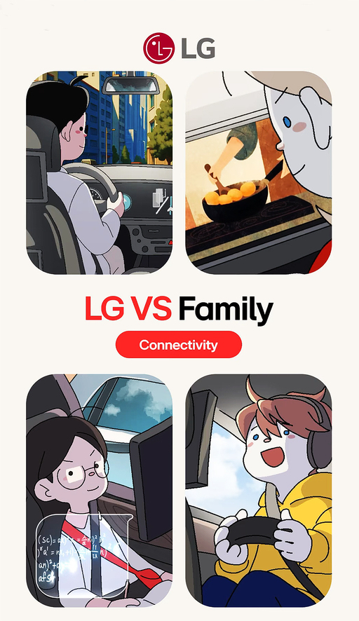 LG VS 패밀리는 LG VS의 앞머리를 딴 루시(Lucy), 조지(George), 버논(Vernon), 소피아(Sophia)가 등장해 일상생활에서 어떤 LG전자의 전장 기술을 경험할 수 있는지 보여준다. 예를 들어 버논이 귀갓길에 운전 중 졸음을 참는 모습을 보이면 LG전자의 ‘인캐빈 센싱’(운전자·차량내부 공간 감지) 기술이 “피곤해 보이는데 커피 한 잔 어떨까요?”라며 경유지에 자주 가는 커피집을 포함시키는 식이다.