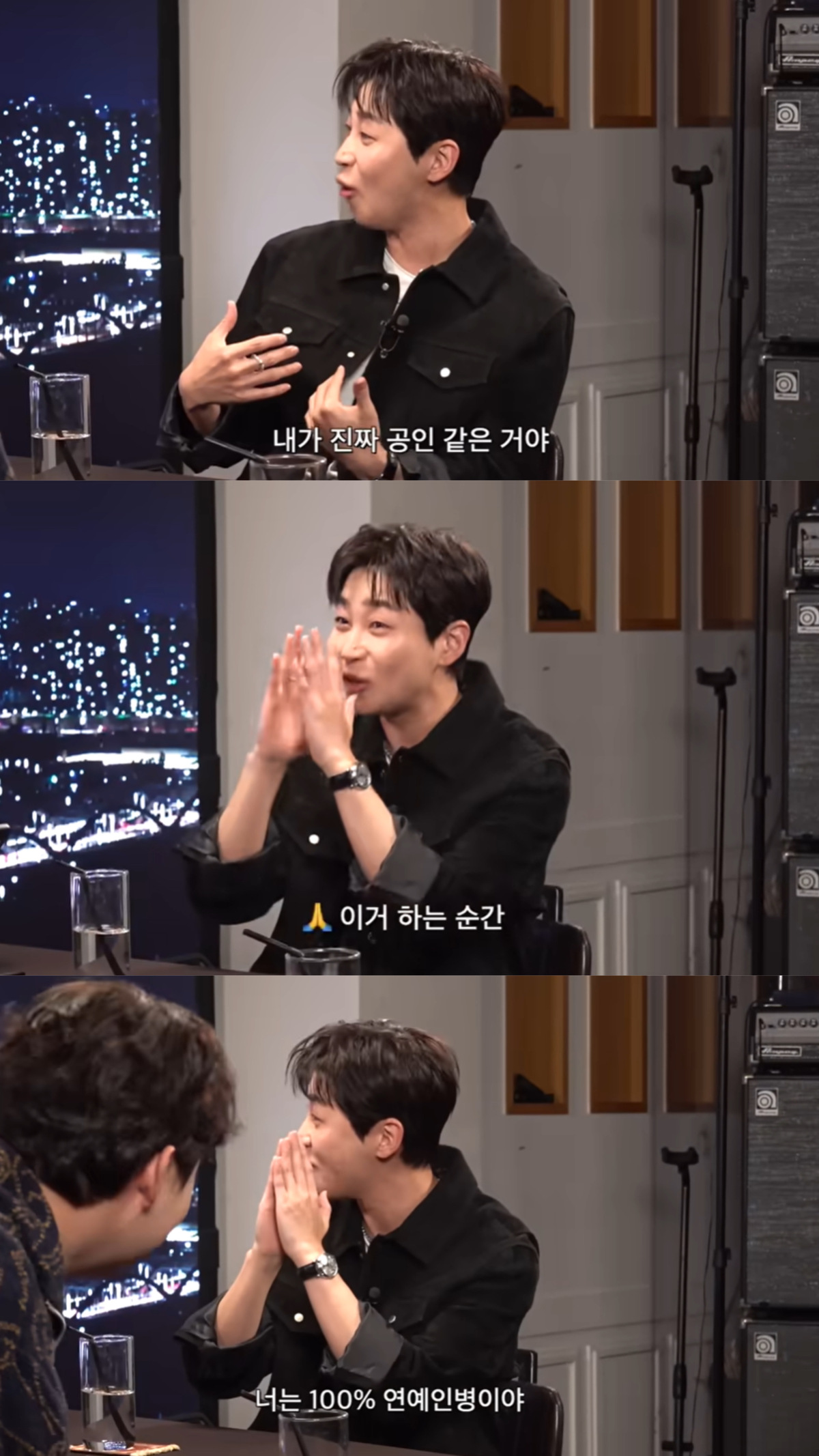 패널 용주는 자신과 재형도 연예인병에 걸린 것 같냐고 물었다. 딘딘은 “2.5기이다”며 “연예인 병을 다룰 수 있다면 진짜 연예인이 되는 거고, 계속 즐기면 나락 간다”고 말했다.