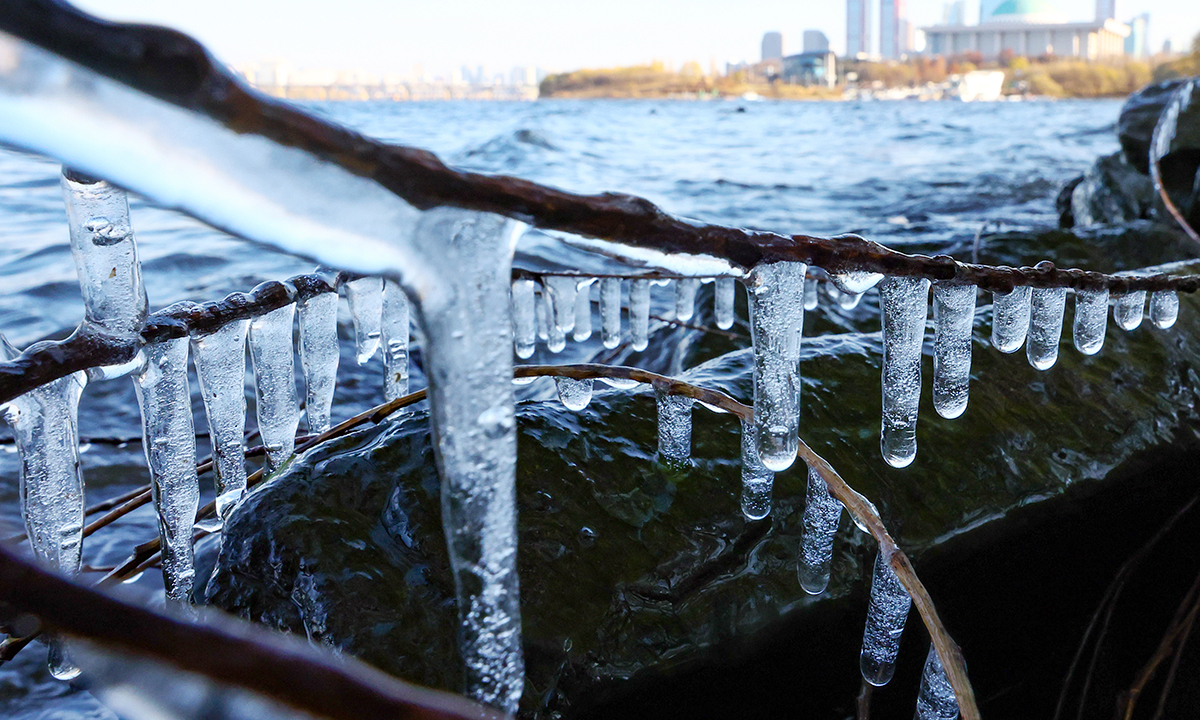 전국 곳곳 한파특보… 한강 고드름 ‘꽁꽁’ 입력 : 2025-12-04 01:43:14 수정 : 2025-12-04 01:43:12 구글 네이버 유튜브 전국 곳곳에 한파특보가 발효된 3일 서울 영등포구 한강변에 고드름이 맺혀 있다. 기상청에 따르면 이날 북쪽에서 찬 공기가 내려오면서 서울 아침 기온이 영하 9도, 대관령 영하 17도, 파주 영하 13도 등 전국 대부분 지역에서 한파가 이어졌다. 기상청은 영하권 추위가 주말까지 계속될 것으로 예상했다. <뉴스1>뉴스1> Copyright ⓒ 세계일보. 무단 전재 및 재배포 금지 뉴스1