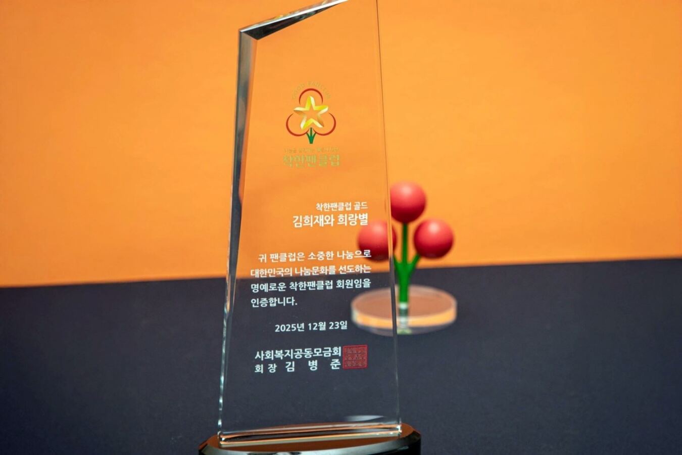 황인식 사랑의열매 사무총장은 “‘희랑별’은 단발성 기부가 아닌 여러 해에 걸쳐 나눔을 실천해 온 팬덤의 모범적인 사례”라며 “착한팬클럽 골드 가입은 팬과 아티스트가 함께 쌓아온 신뢰와 지속성이 만들어낸 의미 있는 성과”라고 말했다.