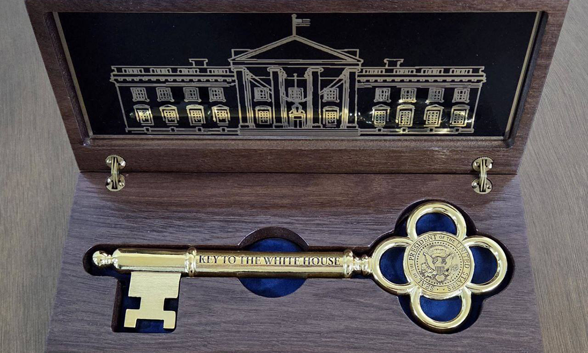 강 비서실장은 황금 열쇠에 대해 “현재까지 베냐민 네타냐후 이스라엘 총리, 아소 다로 전 일본 총리, 일론 머스크 테슬라 CEO, 크리스티아누 호날두 축구 선수가 받은 것으로 알려져 있다”고 설명했다. 강 실장은 “특별한 의미를 가진 이번 황금 열쇠 선물이 굳건한 한·미 관계의 상징이 되기를 바란다”며 “앞으로도 굳건한 한·미 동맹의 미래를 만들어 나가겠다”고 했다.