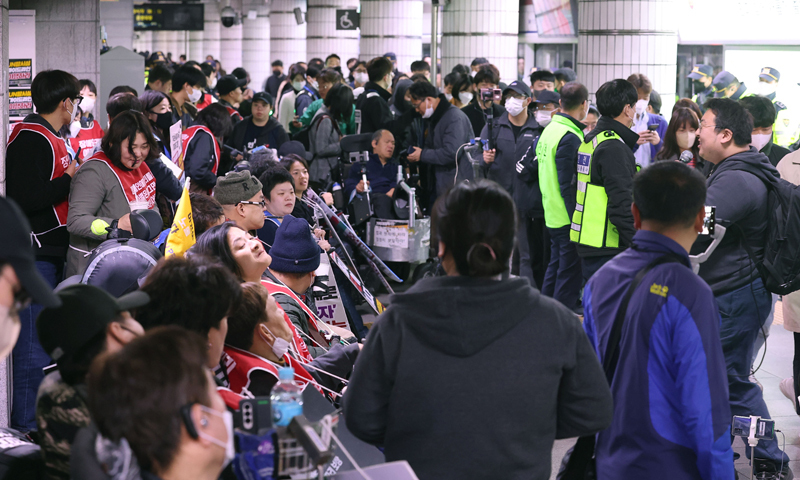 이는 전장연이 오전 8시께부터 1호선 남영역과 시청역에서 지하철 선전전을 벌이고 있는 데 따른 조치다.
