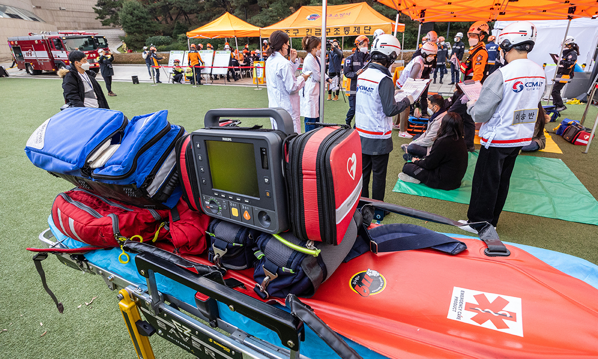 의사 1명, 간호사 또는 응급구조사 2명, 행정 인력 1명 등으로 구성되는 DMAT는 국립중앙의료원(중앙DMAT)과 전국 45개 재난 거점 병원(권역DMAT)에 소속돼 재난 현장에서 중증도 분류, 응급 처치, 이송 등의 응급 의료 업무를 수행하는 조직이다.
