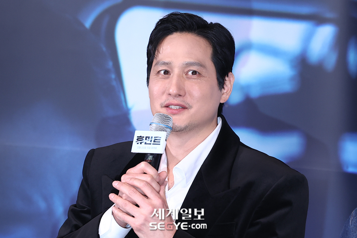 배우 박해준이 4일 서울 용산 CGV에서 열린 영화 ’휴민트’의 언론시사회에 참석해 인사말을 하고 있다.