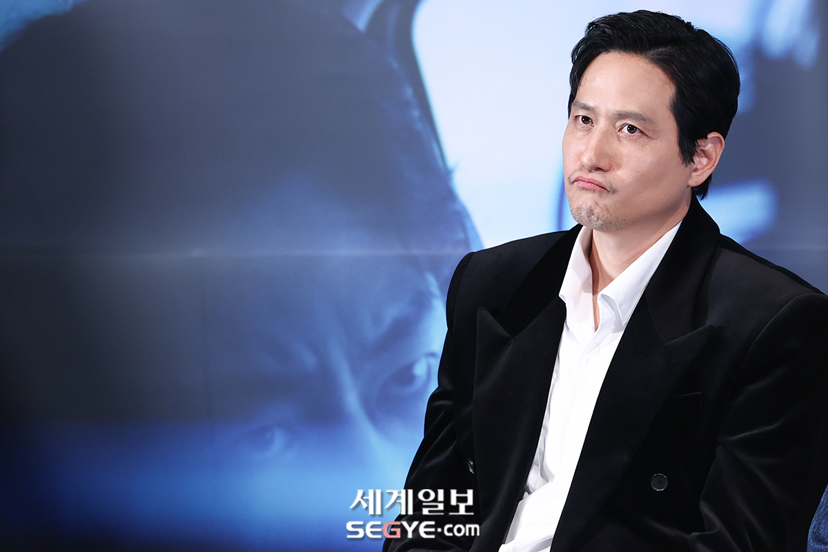 배우 박해준이 4일 서울 용산 CGV에서 열린 영화 ’휴민트’의 언론시사회에 참석해 취재진의 질문을 경청하고 있다.