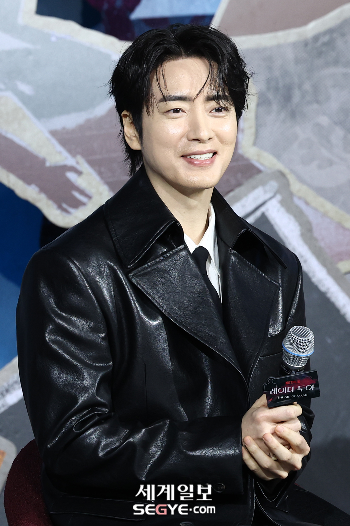 배우 이진혁이 10일 서울 중구 앰버서더 서울 풀만 호텔에서 열린 넷플릭스 시리즈 '레이디 두아'의 제작발표회에 참석해 미소를 짓고 있다.