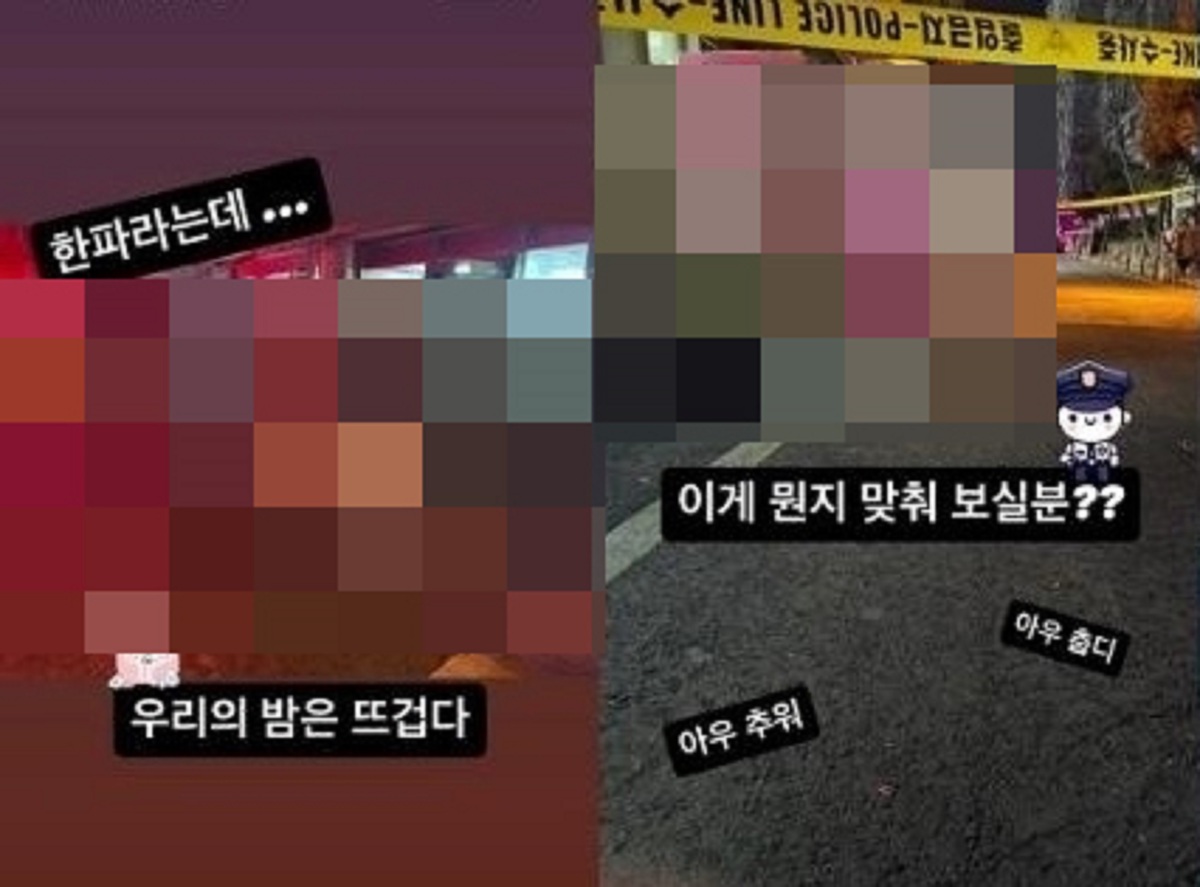 그는 이와 함께 “선지를 앞으로 먹지 말아야지” 등 고인을 조롱하는 듯한 글도 남긴 것으로 파악됐다. 사진에는 시신이 흰 천으로 덮인 모습과 폴리스 라인이 설치돼 있는 장면 등이 담겼다. 특히 지문자동검색시스템(AFIS·아피스) 화면상 사망자로 추정되는 사람 지문이 드러난 모습도 포함된 것으로 알려졌다.