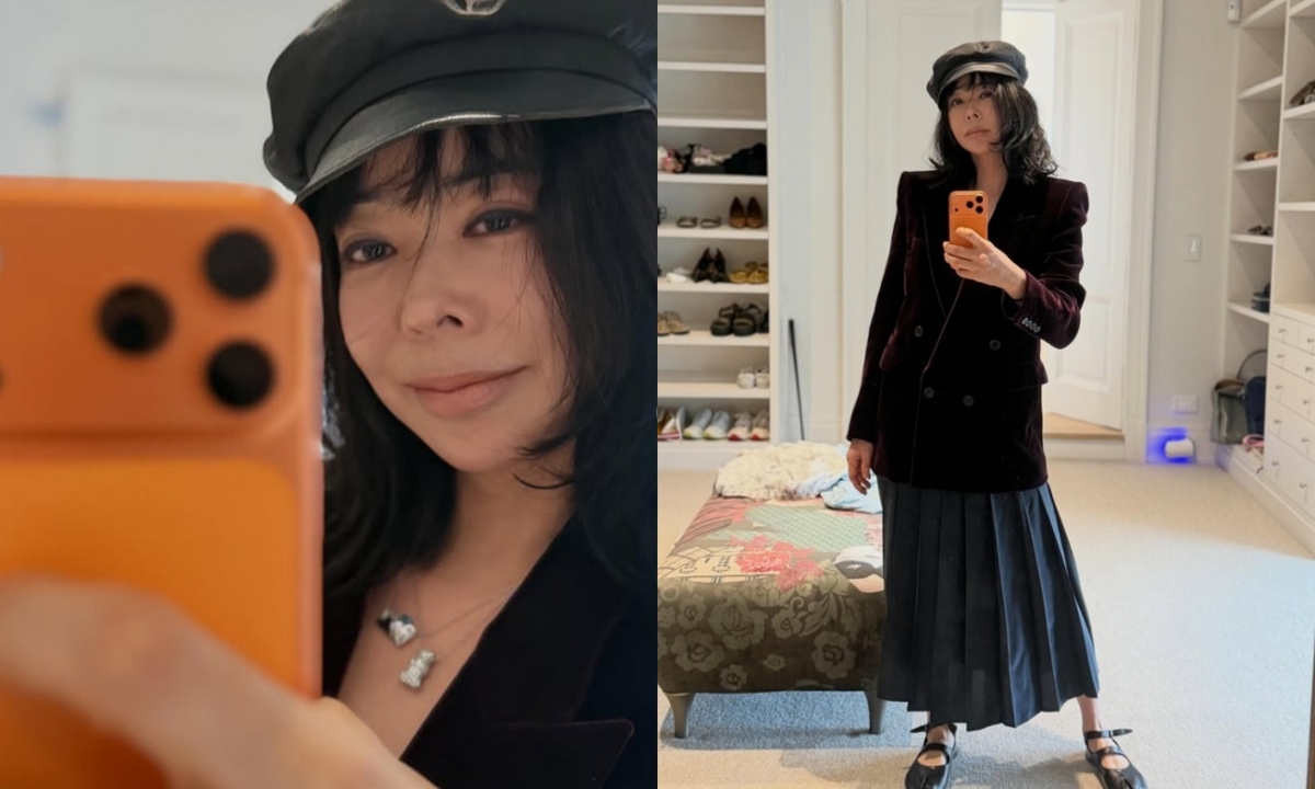 이날 공개된 사진에는 이혜영이 블랙 모자와 재킷 차림으로 거울을 보며 포즈를 취하는 모습이 담겼다.
