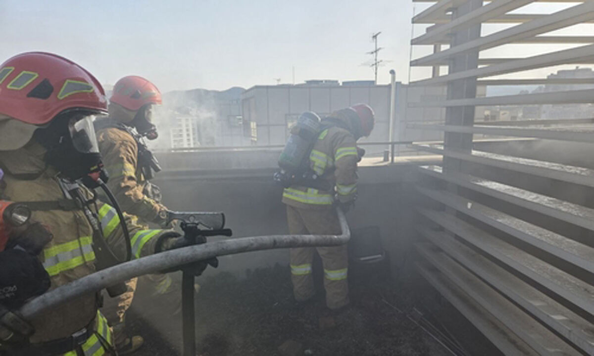 이날 경기소방재난본부와 분당소방서 등에 따르면 소방 당국은 이날 오전 8시 49분께 "외벽 패널 작업 중 화재가 발생했다"는 관계자 신고를 접수한 뒤 4분 만인 오전 8시 53분 현장에 도착했다.