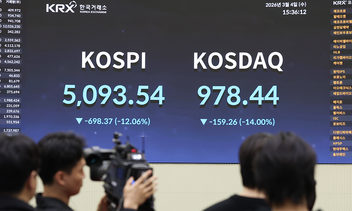 코스피가 4일 미국과 이란 간 전쟁 발발 여파로 역대 최대 폭으로 폭락해 5,100선마저 내줬다. 코스닥지수도 역대 최대 하락률을 기록했다.