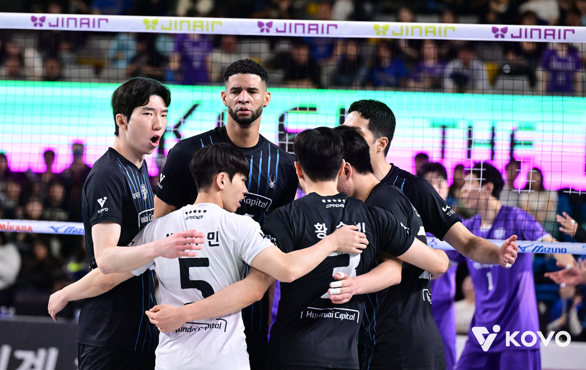 남자 프로배구 ‘디펜딩 챔피언’ 현대캐피탈이 박철우 감독대행 체제 이후 의정부 준플레이오프 승리 포함 원정 경기 9전 전승을 달리던 우리카드의 상승세를 천안에서 펼쳐진 봄 배구에서 저지했다. 두 세트를 내주고도 내리 세 세트를 따내는 역전승이었기에 그 짜릿함은 배가 됐다. 동시에 2년 연속 챔피언결정전 진출을 위한 85%의 확률을 거머쥐었다.