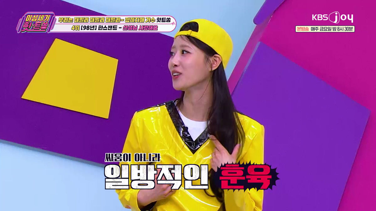 4위는 세 자매로 구성된 한스밴드의 ‘선생님 사랑해요’가 차지했다. 자매끼리 잦은 다툼이 있었다는 일화에 공감한 이미주는 “저는 싸운 것도 아니고 맞았어요”라며 각종 경험담을 공개해 웃음을 자아냈다.