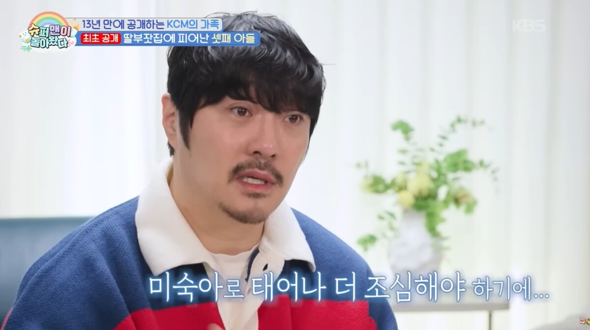 KCM은 “화장실에서 ‘오빠’ 불러서 갔는데 처음이었다. 화장실에 피랑 막, 영화에 나오는 특수효과처럼 무섭게 있는 거다. 119를 불렀는데 태반이 조기 박리돼 애가 태동이 떨어지고 있다고 했다. 이러다 큰일이 날 수도 있겠다. 차 안에서 애가 나올 수도 있겠다. 다행히 하늘이 도왔는지 인큐베이터 있는 병원이 한 자리가 있어서 급하게 수술실에 들어가서 제왕절개 했다. 아이와 산모가 너무 위험했다”고 말했다.