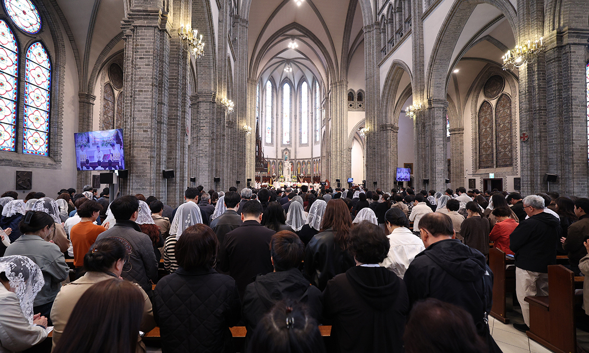 또 "갈등과 분열을 넘어 화해를 선택하는 자리, 무관심과 혐오를 넘어 타인의 아픔에 마음을 여는 자리에서 우리는 부활하신 주님의 현존을 체험한다"며 "우리는 이 자리에서 각자의 양심에 따라 옳고 그름을 분별하고 생명을 살리는 선택으로 하느님의 뜻에 응답하도록 초대받았다"고 역설했다.