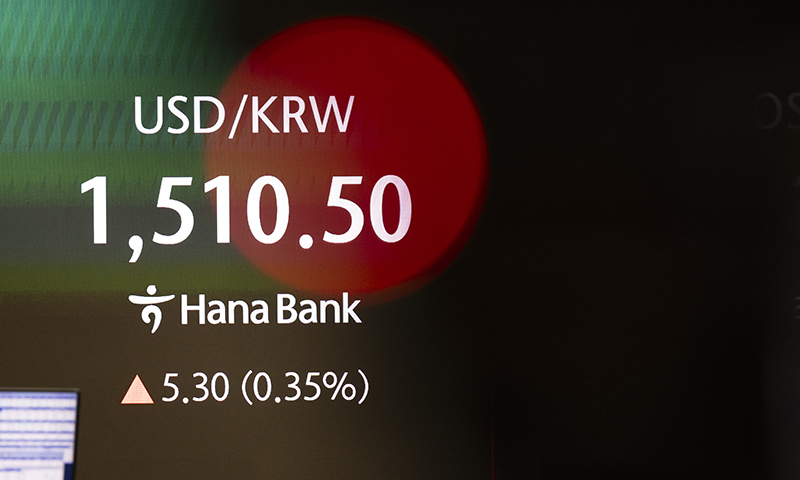 6일 서울 외환시장에서 미국 달러화 대비 원화 환율은 오전 9시 7분 현재 전 거래일 주간 거래 종가(오후 3시 30분 기준)보다 5.1원 오른 1,510.3원이다.