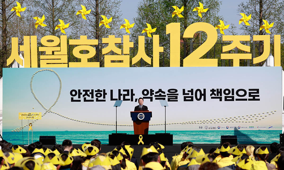 이재명 대통령이 세월호 참사 12주기를 맞은 16일 현직 대통령으로서는 처음으로 기억식에 참석해 “대한민국 대통령으로서 무거운 책임을 통감한다”는 추도사를 낭독했다.