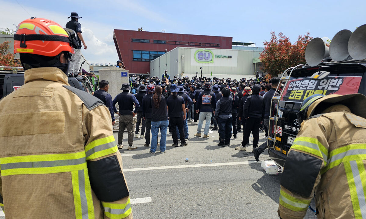 [속보] 진주 물류센터 3명 사상 사고…화물연대 "조합원 총집결" 대응 입력 : 2026-04-20 13:33 수정 : 2026-04-20 13:34 구글 네이버 유튜브 민주노총 산하 화물연대 편의점지부 CU지회 노조원들이 20일 경남 진주시 정촌면 CU 진주물류센터 앞에서 센터 진입을 두고 경찰과 대치하고 있다. 이날 현장에서는 화물차와 집회 참가자 3명이 충돌해 1명이 숨지고 2명이 다치는 사고가 발생했다. 뉴스1 [속보] 진주 물류센터 3명 사상 사고…화물연대 "조합원 총집결" 대응 <연합>연합> Copyright ⓒ 세계일보. 무단 전재 및 재배포 금지 연합 정종호 이슈 나우 더보기 이금희 "가장 기억에 남는 연애? 세 번 만났는데 청혼" 조수미, SM과 전속 레코딩 아티스트 계약… 데뷔 40주년 앨범 발매
