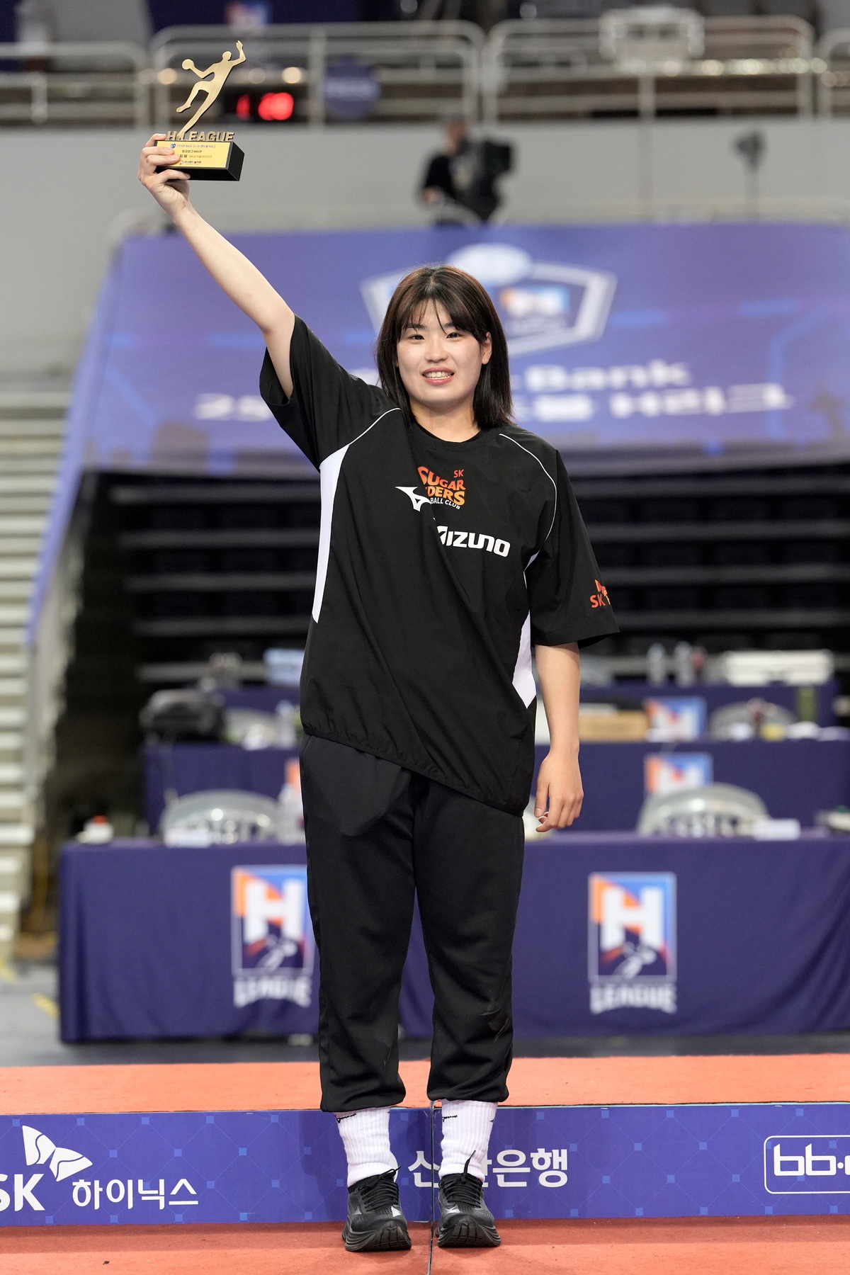 여자부 MVP를 차지한 최지혜(득표율 27.7%)는 올 시즌 SK 슈가글라이더즈의 ‘21전 전승 우승’이라는 전무후무한 대기록을 현장에서 진두지휘했다. 21경기에서 155골을 몰아치며 득점왕 타이틀을 거머쥐었으며, 도움 73개(9위)를 더해 공격 포인트 부문 2위(228개)에 오르는 등 순도 높은 활약을 펼쳤다.